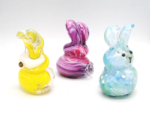 Hop on in to WGK Glass Art to Blow Your Own Glass Bunny with Kayla! Yes you can do it! Let Kayla help you bring out your creativity and bring your masterpiece to life! You will have a choice of a variety colors for your Bunny! It will be so exciting to create and watch your little one come to life when you blow your glass Bunny using the furnace glass blowing technique. It will take around 20 minutes for you to produce your Bunny. Afterwards the Bunny will go through the annealer which will tak