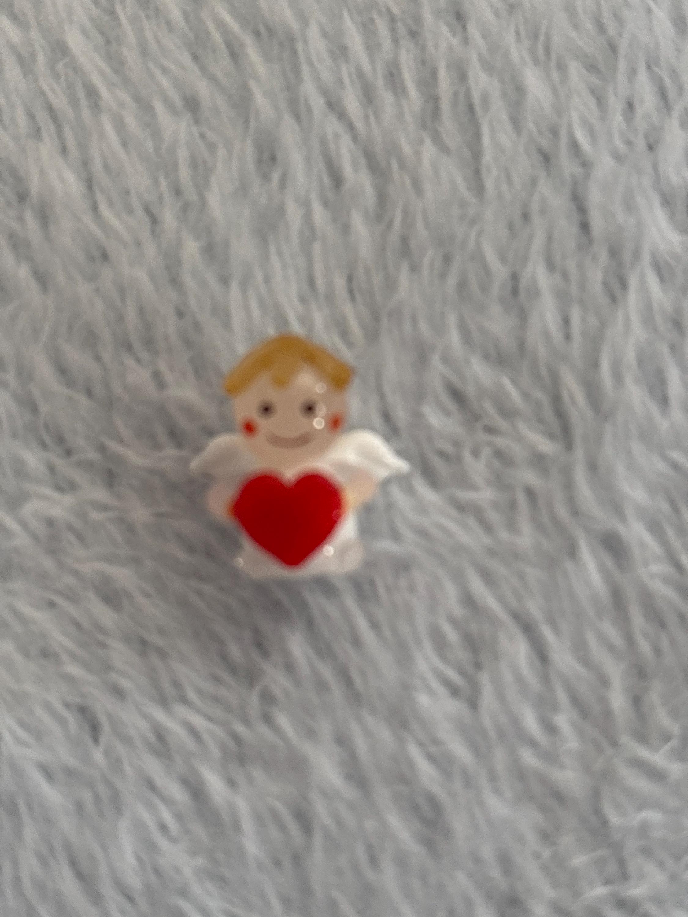 Size: .25 of an inchHandmade, lamp worked glass miniature Angel with heart.